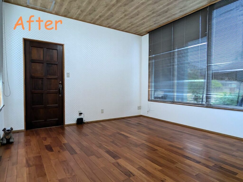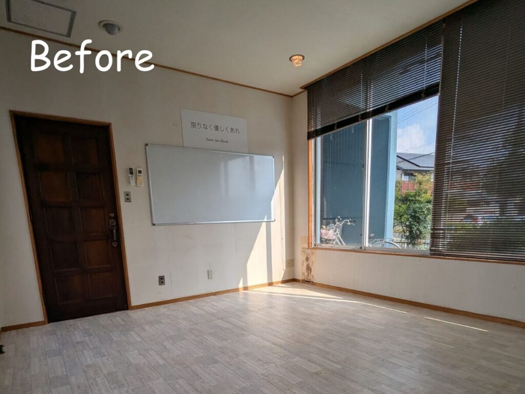傷んだ壁と床を改修し、会議室の床には無垢材を採用。